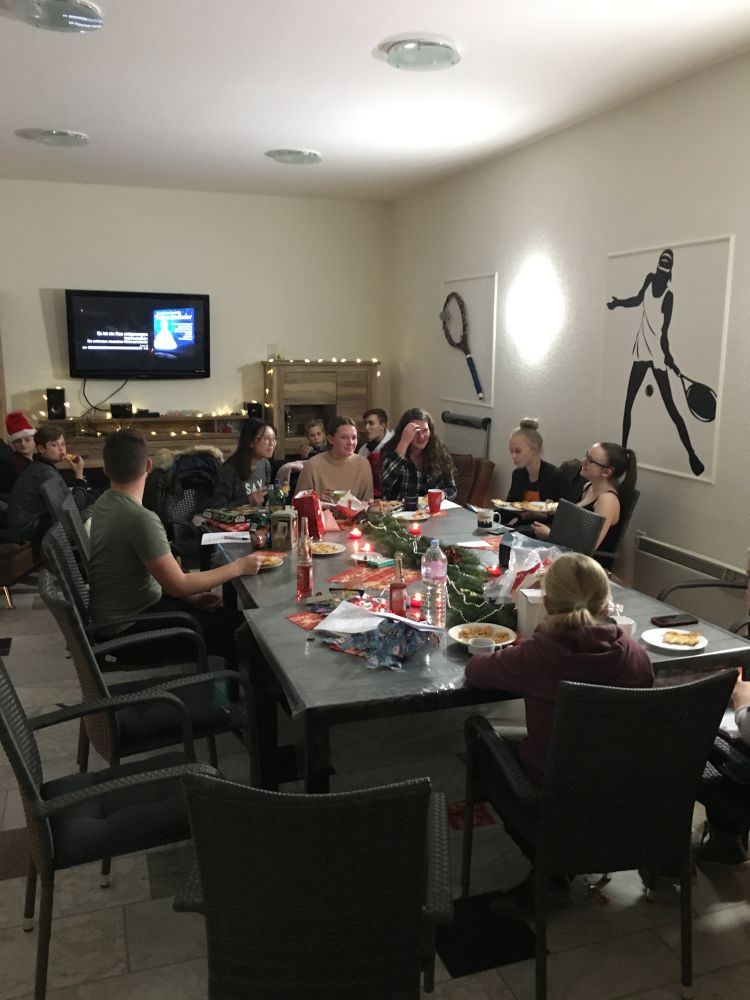 Weiter ging es mit einem Quiz, wo tennisspezifische Fragen zu beantworten waren. Nach der Auflösung der Fragen und dem Weihnachtsfilm saßen die Tennis-Kids noch am Lagerfeuer und ließen es sich gutgehen.